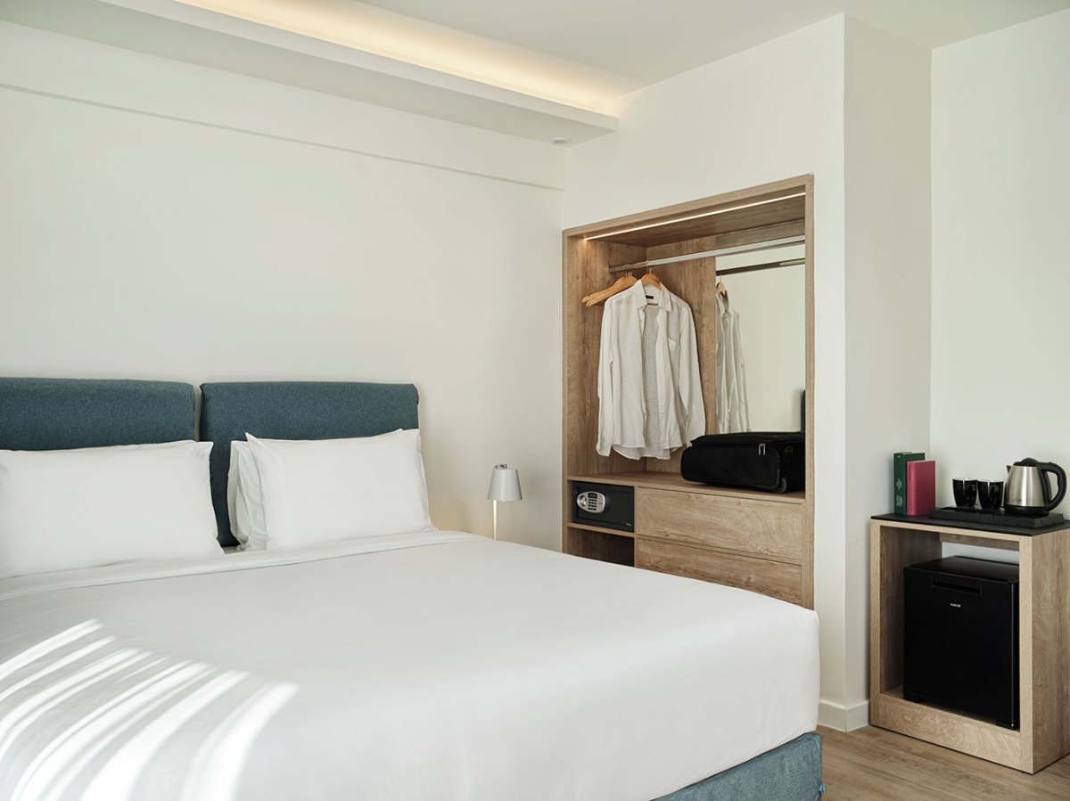 Classic Mountain View is a spacious double room with minimalist interiors and a king size bed, combining all modern comforts just a breath away from the sea.